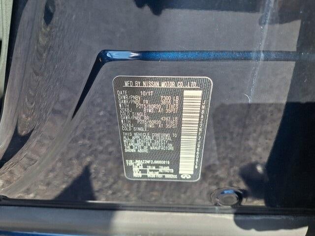 Leather Seats, SUNROOF/ MOONROOF, NAVIGATION, 360 DEGREE CAMERA, BACKUP CAMERA, Bluetooth®, HEATED SEATS, ANDROID AUTO/ APPLE CARPLAY, REMOTE START, BOSE SOUND SYSTEM, KEYLESS ENTRY, 3RD ROW SEATING, 2ND ROW CAPTAINS CHAIRS, 13 Speakers, 2.94 Axle Ratio, 3rd row seats: split-bench, 4-Wheel Disc Brakes, ABS brakes, Activation Disclaimer, Air Conditioning, Alloy wheels, AM/FM radio: SiriusXM, Anti-whiplash front head restraints, Auto High-beam Headlights, Auto tilt-away steering wheel, Auto-dimming door mirrors, Auto-dimming Rear-View mirror, Auto-leveling suspension, Automatic temperature control, Brake assist, Bumpers: body-color, CD player, Delay-off headlights, Driver door bin, Driver vanity mirror, Dual front impact airbags, Dual front side impact airbags, Electronic Stability Control, Emergency communication system: INFINITI Connection, Four wheel independent suspension, Front anti-roll bar, Front Bucket Seats, Front Center Armrest, Front dual zone A/C, Front fog lights, Front reading lights, Fully automatic headlights, Garage door transmitter: HomeLink, Genuine wood console insert, Genuine wood dashboard insert, Genuine wood door panel insert, Heated door mirrors, Heated Front Bucket Seats, Heated front seats, Heated steering wheel, Illuminated entry, Leather Shift Knob, Leather steering wheel, Leather-Appointed Seats w/Stratford Burl Trim, Literature Kit, Low tire pressure warning, Memory seat, Navigation System, Occupant sensing airbag, Outside temperature display, Overhead airbag, Overhead console, Panic alarm, Passenger door bin, Passenger vanity mirror, Power door mirrors, Power driver seat, Power Liftgate, Power moonroof, Power passenger seat, Power steering, Power windows, Radio data system, Radio: AM/FM/HD Single In-Dash CD/DVD Player w/MP3, Rain sensing wipers, Rear air conditioning, Rear anti-roll bar, Rear audio controls, Rear reading lights, Rear seat center armrest, Rear window defroster, Rear window wiper, Reclining 3rd row seat, Remote keyless entry, Roof rack: rails only, Security system, Speed control, Speed-sensing steering, Split folding rear seat, Spoiler, Steering wheel memory, Steering wheel mounted audio controls, Tachometer, Telescoping steering wheel, Tilt steering wheel, Traction control, Trip computer, Turn signal indicator mirrors, Variably intermittent wipers, Voltmeter, Wheels: 20" x 8.0" Split 6-Spoke Aluminum-Alloy.